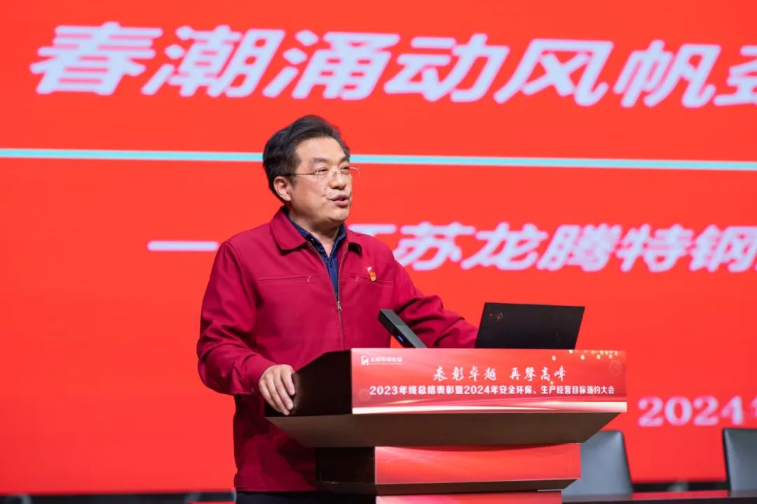 2024年1月22日,江蘇龍騰特鋼集團隆重召開2023年工作總結表彰暨2024年安全環(huán)保、生產經營目標簽約大會。大會全面總結了公司2023年度取得的各項成績,表彰了工作中涌現出的先進集體和個人,并全面部署了2024年度各項目標任務。