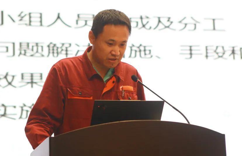 特鋼公司轉(zhuǎn)爐分廠湯佳勇作《高效測(cè)量鋼絲繩卷筒安裝精度法》課題匯報(bào)。