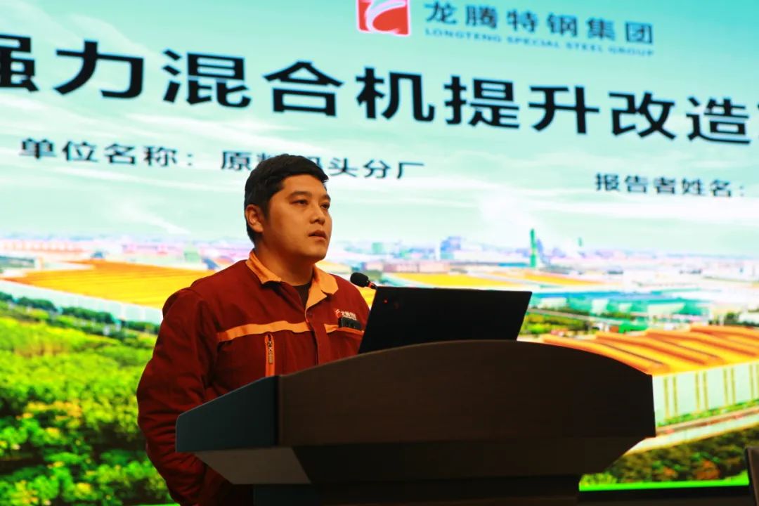 特鋼公司原料碼頭分廠張曉威作《強(qiáng)力混合機(jī)提升改造項(xiàng)目》課題匯報(bào)